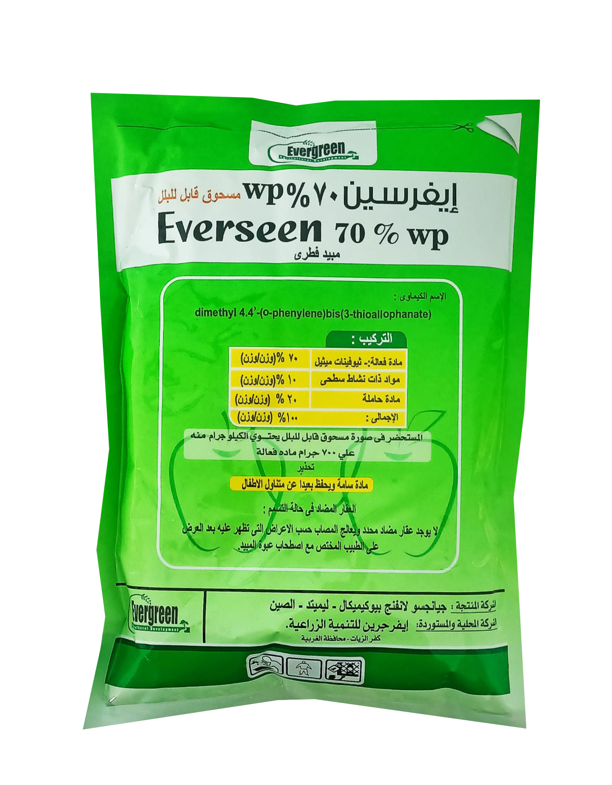 إيفرسين% 70 مسحوق قابل للبلل مبيد فطرى جهازى وقائى وعلاجى يستخدم لمقاومة مرض الجرب على محصول التفاح بمعدل 65 جرام / 100 لتر ماء