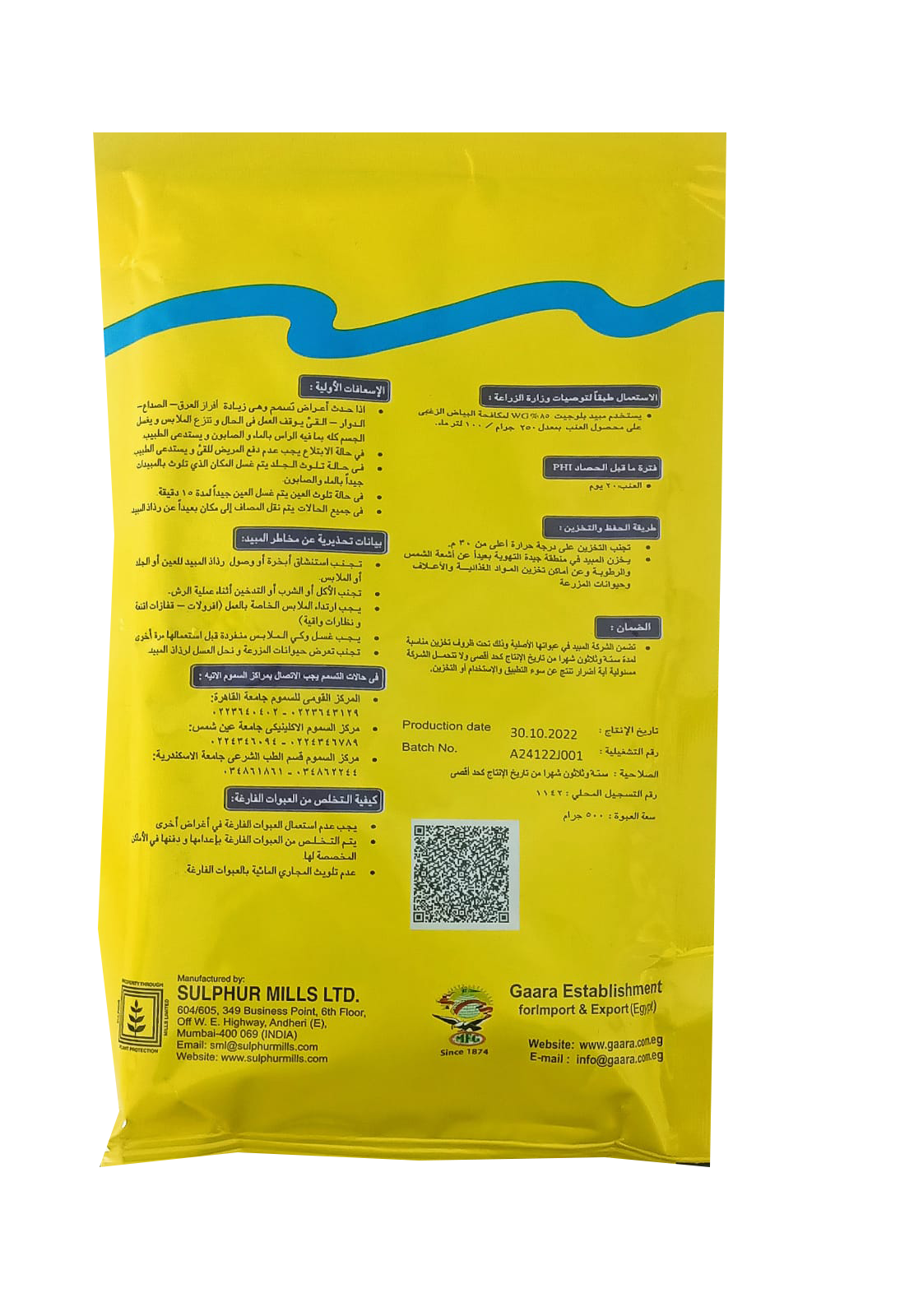 يستخدم مبيد بلوجيت% 85 حبيبات قابلة للانتشار فى الماء لمكافحة البياض الزغبى على محصول العنب بمعدل 250 جرام / 100 لتر ماء