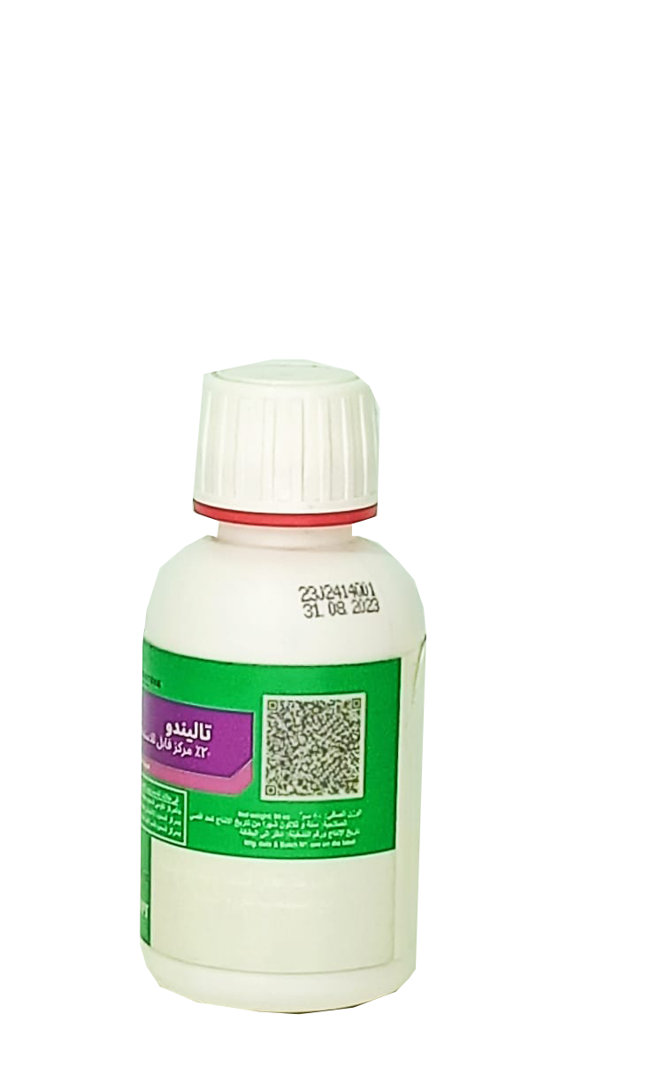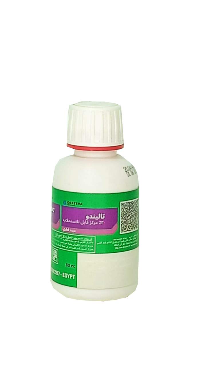 تاليندو% 20 (مركز قابل للاستحلاب) مبيد فطرى يحتوى على% 20 من مادة البروكوينازيد ينتمى المبيد الى عائلة الكوينازولينون يعمل بطريقة متطورة ؛ فهو يكافح وقائياً ” وعلاجياً مرض البياض الدقيقى على العنب والخيار من خلال منع نمو و تكوين الأبواغ الناشئة للفطر