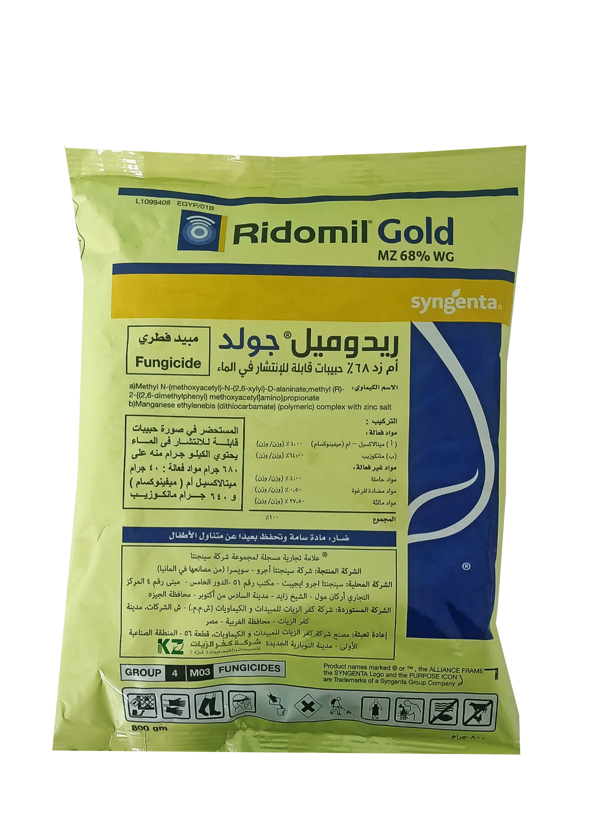 يستخدم مبيد ريدوميل جولد ام زد% 68 (حبيبات قابلة للانتشار فى الماء)