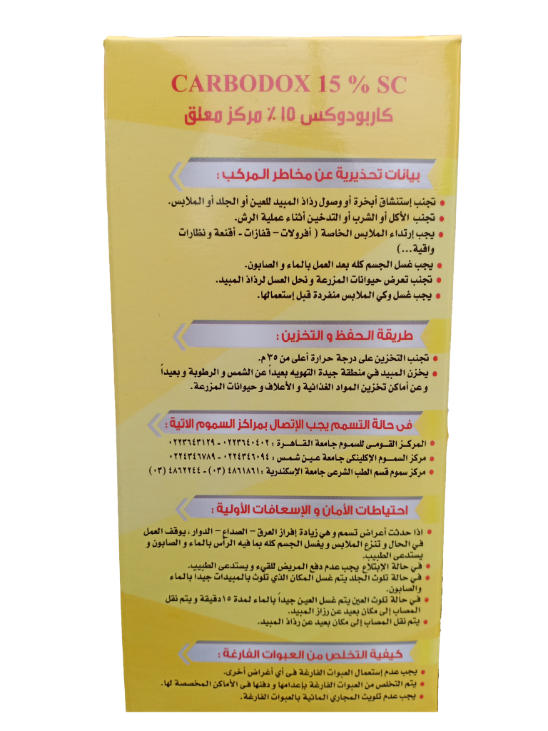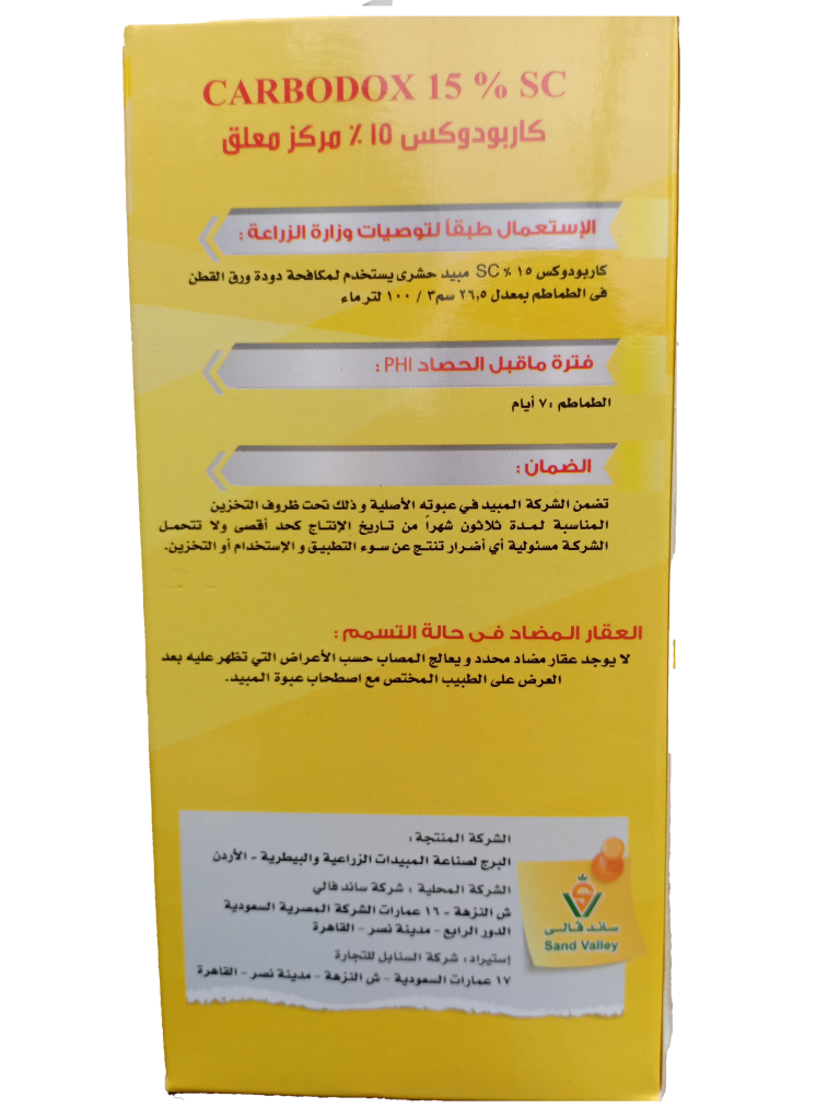 الوسوم: CARBODOX 15% SC, كاربودوكس 15% مركز معلق, مبيد حشرى